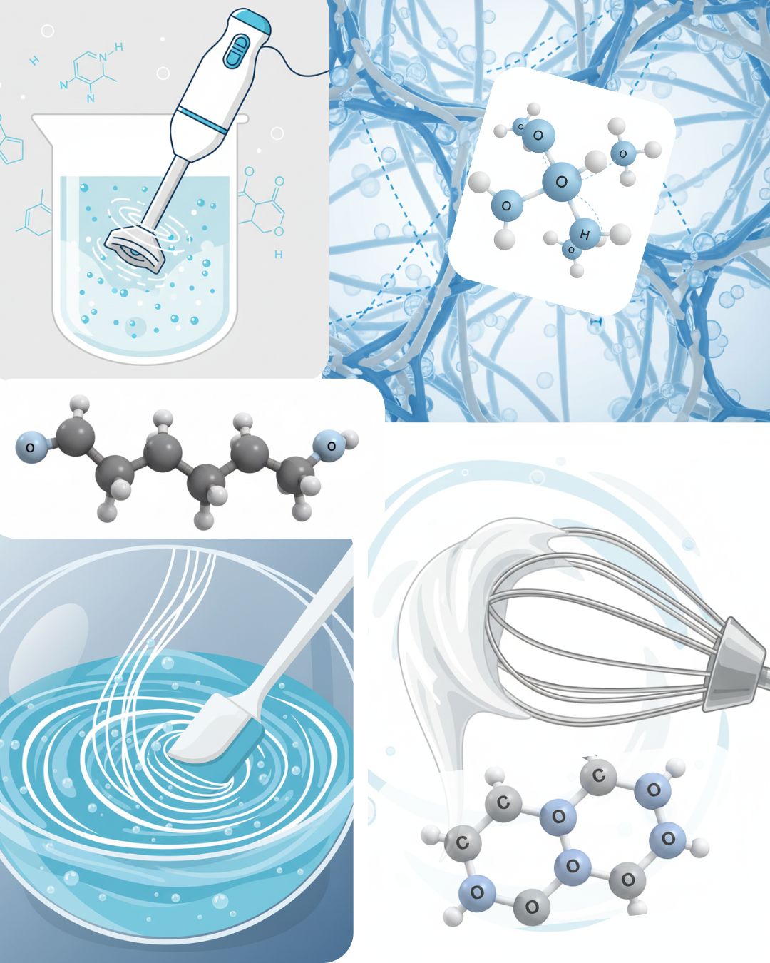 Émulsification · Foisonnement · Gélification · Épaississement